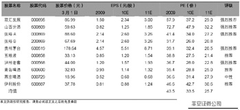 白酒企業(yè)預(yù)期一季報(bào)都將較為靚麗:茅臺(tái)、五糧液、老窖、汾酒將實(shí)現(xiàn)50%左右的利潤(rùn)增速;古井、洋河、金種子等預(yù)期增速更高。但春節(jié)之后即顯現(xiàn)的部分品種終端價(jià)格回調(diào)表明,白酒的消費(fèi)淡季開始來臨。以抗通脹為投資邏輯的高端產(chǎn)品或許表現(xiàn)弱于以經(jīng)營管理改善、產(chǎn)品結(jié)構(gòu)和銷量增長(zhǎng)為主的二三線品種。