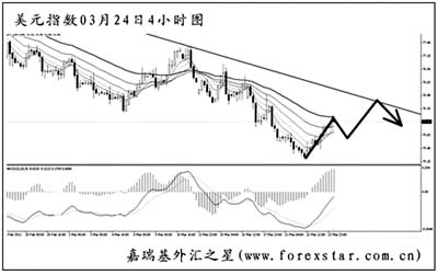 受到歐元回調(diào)影響,周三美元指數(shù)大幅反彈,到周四記者截稿時觸及75.99的高點。分析師表示,從技術(shù)圖形上來看,美元指數(shù)自周二K線開出階段底部的垂頭信號以來,行情進行了反彈。技術(shù)指標調(diào)整完畢后,預(yù)計在上沖過76.00一線壓力位后,美元指數(shù)還有進一步反彈空間。