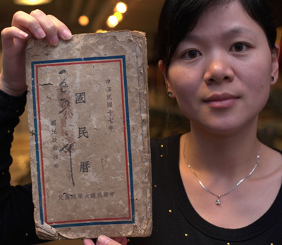 圖為拍賣行工作人員展示一本1928年出版的民國時(shí)代“國民歷”。新華社發(fā)