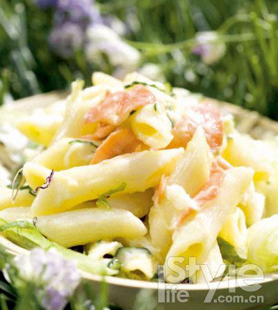 3.將煮好的面條放在一個大碟子里,放些橄欖油拌一下使面條不容易結(jié)塊。野餐時將做好的醬放到面條里,