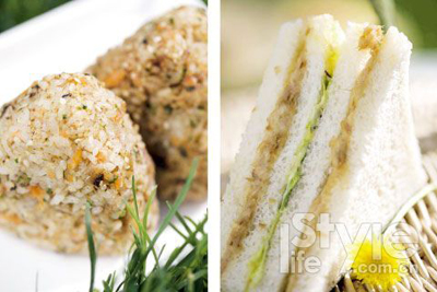 野餐的風格很多,時下最流行的是低碳環(huán)保路線,可以自己在家做一些簡單容易攜帶的食物,油炸、烘焙、涼拌的食物更加適合保存。比如三明治、壽司、沙拉、飯團——彼得·梅爾曾經(jīng)說:美味的三明治是成功野餐的一半。而飯團,更是日本人野餐的最愛,在櫻花盛開的季節(jié),幾乎所有在櫻花樹下鋪開一張漂亮花布的賞櫻者,都會帶上手工制作的美味飯團。除了食物的烹飪方式,食材的選擇也很重要,就拿壽司來說,魚生類壽司很容易因為時間和溫度的原因變質(zhì),而熟食做的壽司就可以保留得更好。朋友聚會的話,不妨規(guī)定每個人帶一個菜,互相分享。