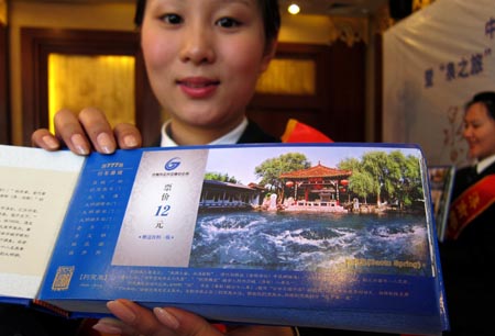3月27日,濟南市公交總公司在游777路公交線路上推出我國首套明信片式公交車票。這套公交車票以“泉之旅”為主題,正面是濟南七十二名泉風(fēng)光及票價、站點、旅游信息等內(nèi)容,反面是明信片標(biāo)準(zhǔn)郵政格式并附有一張80分的郵票,乘客可像使用普通明信片一樣直接投寄使用!