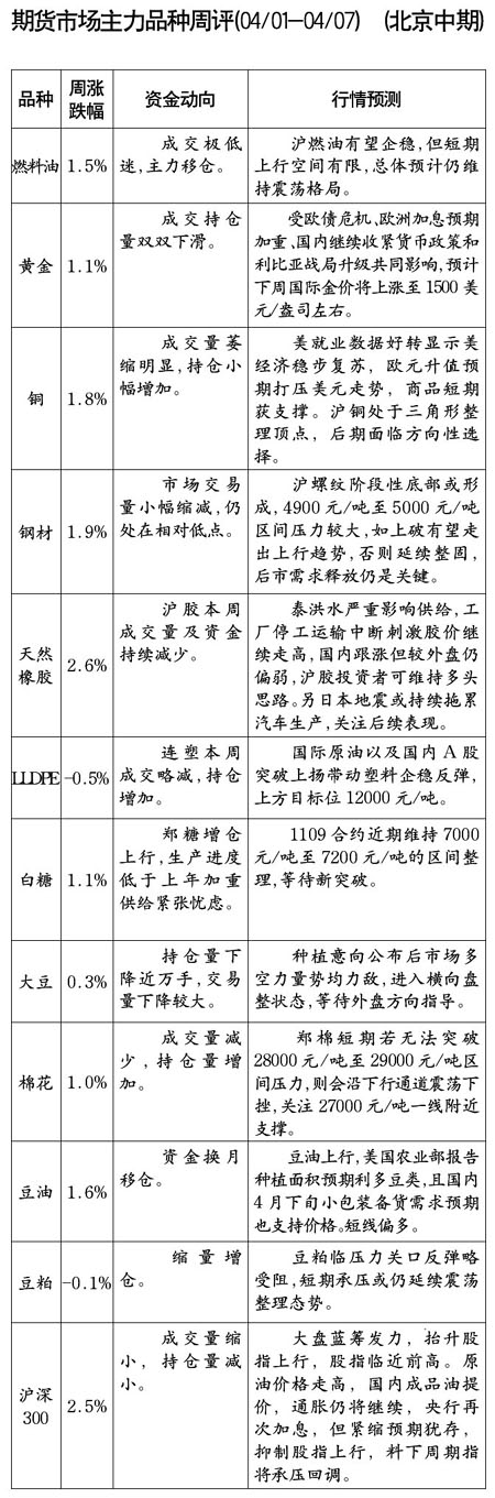 期貨市場主力品種周評[04.01-04.07]