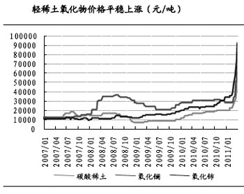國(guó)聯(lián)證券發(fā)布的報(bào)告稱(chēng),盡管?chē)?guó)家統(tǒng)一調(diào)整稀土礦原礦資源稅稅額標(biāo)準(zhǔn)有助于通過(guò)增加開(kāi)采成本遏制濫采賤賣(mài),但由于調(diào)整后仍從量征收,而非從價(jià)征收,如果今后稀土價(jià)格進(jìn)一步上漲,從量方式仍不能實(shí)現(xiàn)有效控制。目前稀土價(jià)格近年來(lái)幾乎沒(méi)有停止過(guò)漲勢(shì)。