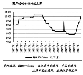 產(chǎn)品結(jié)構(gòu)持續(xù)優(yōu)化提升云南鍺業(yè)整體盈利能力,13N高純鍺仍是主要超預(yù)期因素。中投證券認(rèn)為,2010年鍺價(jià)是歷史底部也將是未來(lái)的底部,下游需求領(lǐng)域尤其安全性更高的太陽(yáng)能領(lǐng)域可能出現(xiàn)超預(yù)期需求,鍺還屬于優(yōu)勢(shì)資源品種,對(duì)鍺行業(yè)持續(xù)看好。