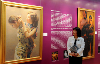 陳逸飛“上海舊夢(mèng)”系列作品《和睦(左),估價(jià)1200萬(wàn)至1800萬(wàn)港元。記者 宋振平/攝 |