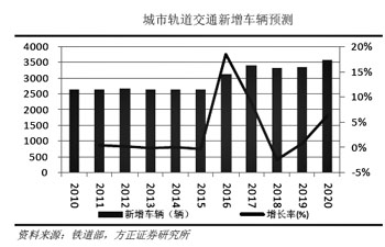 “十二五”規(guī)劃給鐵路等一系列軌道交通建設(shè)帶來巨大的投資機(jī)會(huì)。國家“十二五”規(guī)劃綱要明確提出“加快鐵路客運(yùn)專線、區(qū)際干線、煤運(yùn)通道建設(shè),發(fā)展高速鐵路,形成快速客運(yùn)網(wǎng),強(qiáng)化重載貨運(yùn)網(wǎng)?茖W(xué)制定城市軌道交通技術(shù)路線,規(guī)范建設(shè)標(biāo)準(zhǔn),有序推進(jìn)輕軌、地鐵、有軌電車等城市軌道交通網(wǎng)絡(luò)建設(shè)”。隨著國家《中長期鐵路網(wǎng)規(guī)劃》的逐步實(shí)施,我國鐵路路網(wǎng)規(guī)模將進(jìn)一步擴(kuò)大。