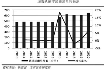 莫尼塔報(bào)告則認(rèn)為,地鐵建設(shè)在未來10年有望持續(xù)加速。從基建未來發(fā)展的潛力來看,中國城市軌道交通的建設(shè)仍然處于早期階段。根據(jù)各個(gè)城市地鐵運(yùn)營里程的統(tǒng)計(jì),截至2009年末,全國地鐵的運(yùn)營里程為1014公里。按照各城市地鐵的發(fā)展規(guī)劃匯總情況,到2015年,全國地鐵的通車?yán)锍逃型_(dá)到3904公里,6年間的年均復(fù)合增長率達(dá)到25%。