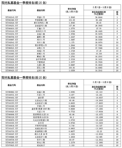 私募排排網(wǎng)統(tǒng)計(jì)的去年陽(yáng)光私募年度收益前十名,今年一季度的開局并不十分理想。Wind統(tǒng)計(jì)顯示,一季度只有3只取得了正收益。常士衫掌管的“世通1期”保持著12.35%的回報(bào)率,華寶1號(hào)收益率達(dá)到8.90%,澤熙瑞金1號(hào)也有6.82%的回報(bào)率。而“從容醫(yī)療1期”損失最慘重,一季度回報(bào)率為-12.70%;另外西域投資旗下的“光華59”回報(bào)率為-11.22%,理成資產(chǎn)旗下“理成風(fēng)景2號(hào)”收益率為-9.28%。
