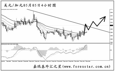 ▲美元兌加元此前創(chuàng)出新低之后大幅反彈,圖中MACD已經(jīng)進入到多頭動能充盈的階段。目前匯價正在考驗下降趨勢線和道氏理論顯著高點的雙重阻力,能否升破成為后市繼續(xù)反彈的關(guān)鍵。結(jié)合最近貴金屬及商品價格的回落來看,預(yù)計加元再度大幅走強的希望不大,目前已可以逐步尋找做多的機會操作。