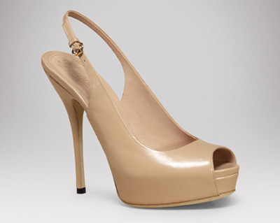 Gucci 2011春夏季的女裝設計靈感來源于上世紀六七十年代著名時尚攝影師蓋·伯丁 (Guy Bourdin) 、David Bailey和Chris von Wangenheim 鏡頭下那具有侵略性又無比性感的“御姐”(Femme Fatale) ,大面積高飽和度色塊的撞擊是奢華與性感的全新演繹,而這一季Gucci 鞋履設計也完全配合這一都市感摩登風格,魚骨涼鞋、高筒鏤空魚嘴涼鞋、霓虹艷色和金屬鞋跟細節(jié)凸顯出前衛(wèi)氣息。