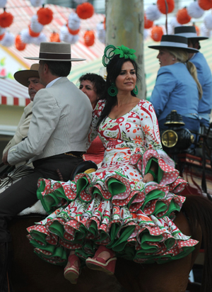 身穿傳統(tǒng)服飾的西班牙姑娘。新華社/法新 |