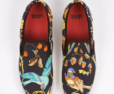 sneaker上,打造出一系列奢華而又美輪美奐的鞋款。鞋履采用的極具古典韻味的鮮艷色彩花紋,與Vans簡約輕便的風(fēng)格結(jié)合,時尚優(yōu)雅之外又顯流行元素。