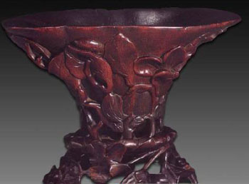 中國(guó)清代犀牛角工藝品。資料照片 |