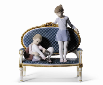 雅致作品《小舞鞋》展現(xiàn)了兩位小芭蕾舞者以不同的姿態(tài)在上舞蹈課前進(jìn)行最后準(zhǔn)備的場(chǎng)景。在整件作品中,最搶眼的是這把承受了兩位小芭蕾舞者和自身重量的椅子。僅僅依靠四條纖細(xì)的椅子腿,就支撐起整件作品的重量,這無(wú)疑增加了作品在制作上的技術(shù)難度,尤其是在整個(gè)窯燒過程中如何保持作品穩(wěn)定而不坍塌。這件全球限量的作品是雅致今年兒童節(jié)的主打作品,既甜美又不失優(yōu)雅。