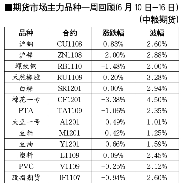 期貨市場主力品種一周回顧[6月10日-6月16日]