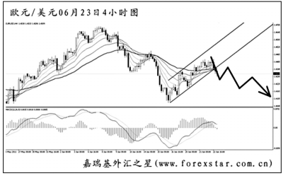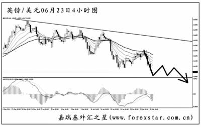 歐元兌美元小幅跌破了圖中的上升通道下沿,最近的下跌趨勢仍在延續(xù)。從日線圖上看,此輪歐元要挑戰(zhàn)的目標仍然為5月下旬的低點1.3970,跌破方可打開進一步的下行空間。雖然圖中的均線系統(tǒng)被小幅升穿,但由于此前的反彈力度始終不強,預計后市歐元將以震蕩下行的走勢為主。