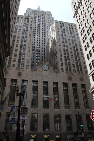 沿著芝加哥的“華爾街”——拉塞爾大街一路南行,當(dāng)你發(fā)現(xiàn)自己無路可走的時(shí)候,就會(huì)看到一座氣勢宏偉的建筑聳立在面前,這就是全球最大的衍生品交易中心,也是這座城市引以為豪的坐標(biāo)——芝加哥期貨交易所(Chicago Board Of Trade)。