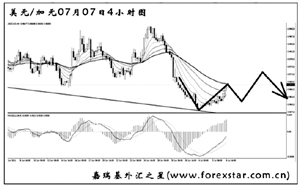 歐元兌美元此前的上漲刺破了日線圖形成的下降壓力線,但未能形成有效突破,短線匯價重新選擇下行,且力度強勁。圖中的震蕩通道為前一段時間形成,現(xiàn)在來看仍然起到一定的效果。預(yù)計歐元將首先向下挑戰(zhàn)通道下沿1.4140一線支撐,能否跌破成為后市繼續(xù)下跌的關(guān)鍵。