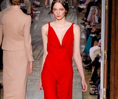 長袖曳地禮服、及膝A字裙、肩線圓潤的套裝……2011秋冬華倫天奴