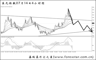 而美元并沒有受非農(nóng)數(shù)據(jù)的影響而大幅下挫,目前仍處于一個(gè)日線的盤整局面之中。美指短暫突破了收斂三角形的上沿,并刺破了76.35的高點(diǎn),但此后大幅下挫,短線主趨勢(shì)再度轉(zhuǎn)為向下。從力度交替的角度考慮,美元后市挑戰(zhàn)圖中下方趨勢(shì)線支撐的概率較大,一旦跌破,再戰(zhàn)前低72.65并非沒有可能。