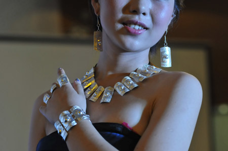 7月19日,一場別具民族特色的銀飾展示會在貴州省黔東南苗族侗族自治州凱里市舉行,模特登臺展示多款“苗族風(fēng)”銀制首飾與銀制工藝品,吸引眾多游客前來參觀。據(jù)了解,本次展示會還在現(xiàn)場進行銀飾拍賣,所得款項將用于資助當(dāng)?shù)氐呢毨W(xué)生。圖為模特在凱里苗族銀飾展示會上展示銀飾品。新華社發(fā)