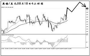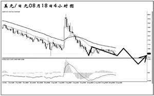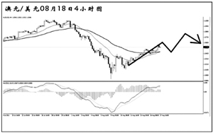 澳元兌美元將日線圖道氏理論顯著低點的支撐1.0390跌破,且短暫觸及了1.0000的整數(shù)關(guān)卡下方之后,匯價持續(xù)反彈,F(xiàn)在澳元在對此前的下跌進行修正,調(diào)整力度較強,已經(jīng)將圖中的均線系統(tǒng)重新升破。由于匯價重新有效回到了1.0390上方,現(xiàn)在做空澳元需要首先等待下跌動能的爆發(fā)方可考慮。