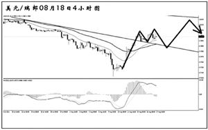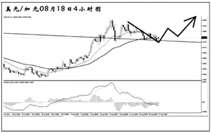 美元兌瑞郎在創(chuàng)出0.7070的低點之后強力反彈,接連升破了兩條下降壓力線的阻力,同時,4小時圖均線系統(tǒng)已經(jīng)形成多頭排列,瑞郎的強勢基本告一段落。目前匯價在對此前的上漲進行修正,短線再度回抽趨勢線的希望較大,此后有望繼續(xù)上行,向周線圖趨勢線阻力0.8300一帶挺近。