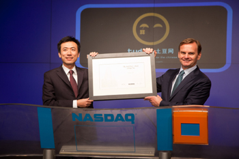 8月17日,土豆網(wǎng)登陸納斯達(dá)克交易所。新華社發(fā)(納斯達(dá)克提供) |