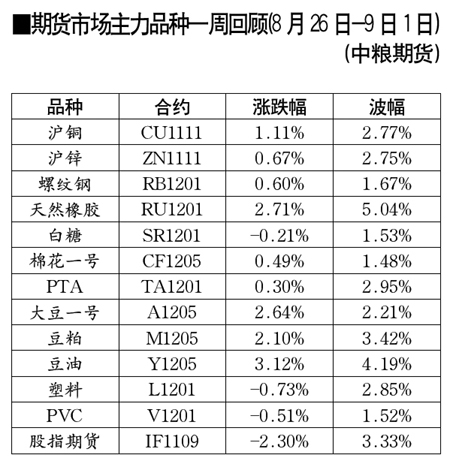 期貨市場(chǎng)主力品種一周回顧[8月26日-9月1日]