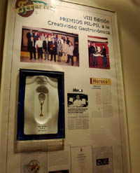 在整個進食過程中,我一邊忙著吃,一邊也沒有讓手中相機停下來?,照片上是一款很典型的西班牙土豆餅。而在Vitoria人的手下,它看起來又像法國蛋餅,加生菜,還加上了蟹肉。我不得不說,這是我吃過的最好吃的西班牙土豆餅。還有那沙丁魚,金槍魚,雞蛋,蘆筍和橄欖穿成的小串串,也相當可口。接下來我們品嘗到了藏紅花佐加里西亞章魚風味和火腿煎青椒等等。還有蔬菜奶酪卷,這是由三種蔬菜制成的,中間卷有奶酪絲,用熱蔬菜的溫度將奶酪烤至半融化。這個塔帕斯個頭很大,但吃著有些膩。