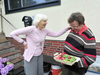 “以物易物”過生活的德國婦女海德馬里·施韋爾默在與鄰居攀談。新華社/法新 |