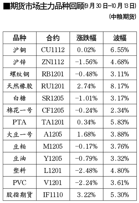 期貨市場主力品種回顧[2011.09.30-2011.10.13]