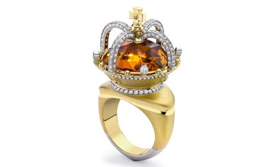 平民百姓也許無法擁有與皇后一樣的華麗珠寶,但Theo Fennell皇室珠寶則足以令你脫穎而出,即使你并不是馬車中王子身邊的那個女孩。 Theo Fennell善于找樂子,這一次,他對風靡全球、大受追崇的皇室婚禮排場表示不屑。對于那些自我感覺配得上金光閃閃的皇室珠寶的人們而言,Theo Fennell提供了皇冠戒指系列供其選擇。對Theo Fennell來說,每件珠寶杰作均是為那些崇尚趣味性以及青睞傳統(tǒng)的人們精心打造的。這些珠寶比茶巾或婚禮杯更有品味。