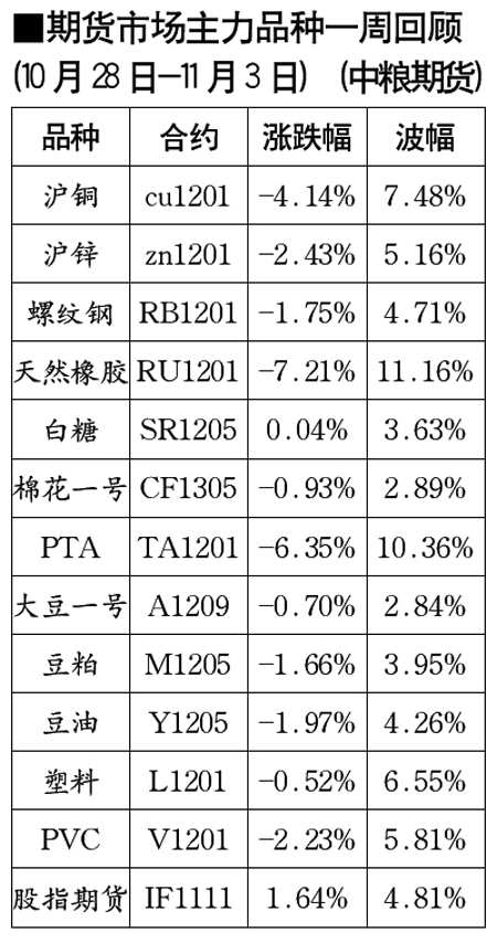 期貨市場(chǎng)主力品種一周回顧[10月28日-11月3日]