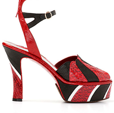 以高檔皮具聞名世界的西班牙品牌Loewe 2012春夏帶來粗細(xì)適中的高鞋跟,有了前端防水臺(tái)的設(shè)計(jì)讓舒適度陡增。 這一季,Loewe在鞋子的設(shè)計(jì)上除了蛇紋拼接的處理以外, 更以抽象的概念將整體花紋構(gòu)建出結(jié)構(gòu)清晰的視覺感官,讓每一雙鞋都堪稱藝術(shù)精品。