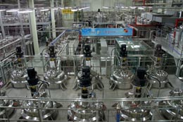 在工作人員的指引下,我們接著參觀了常人難以進(jìn)入的VVIP區(qū)——人參精加工區(qū)。這里又是另一番天地。透過(guò)玻璃窗,我們看到幾百臺(tái)圓形的大型機(jī)器,沿著管道有序排列,一刻不停地運(yùn)轉(zhuǎn)著。這就是韓國(guó)人參公社特殊的人參精制造工藝,將紅參的精華——汁液濃縮成人參精,制成各類產(chǎn)品,方便消費(fèi)者食用。整個(gè)人參精的加工過(guò)程需要15天,不可停歇。為保證絕對(duì)安全,加工區(qū)域?qū)嵭腥忾]。