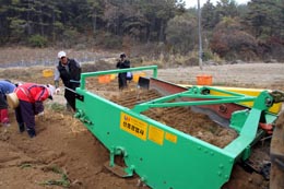 在利川,我們看到大片金黃色的人參田,農(nóng)民在田里勞作。如今收獲人參實(shí)現(xiàn)了機(jī)械化,幾輛大型的工作車輛沿著耕地渠道緩緩開過(guò),將深埋地下的人參翻起至地表,這個(gè)過(guò)程需進(jìn)行兩次,一次深一次淺,以便在不傷害到嬌弱人參的前提下,將全部人參挖出。接著,農(nóng)民們?cè)偈止⑼诔龅娜藚⒀b入大籮筐,搬上運(yùn)輸車輛運(yùn)走。