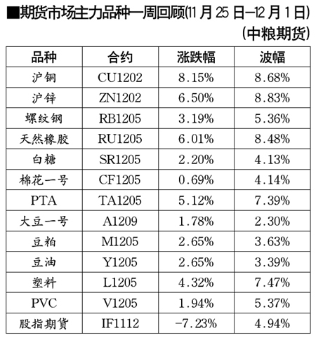 期貨市場主力品種一周回顧[11月25日-12月1日]