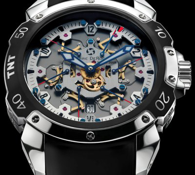 Deroche的簽名,這種架構(gòu)和設(shè)計令該表張揚大膽