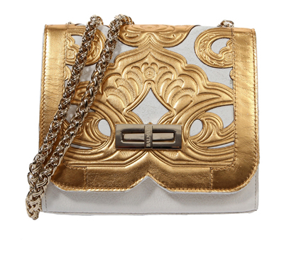 流蘇皮袋、巴洛克風(fēng)格金色手鐲、復(fù)古宮延花紋手拿包、印地安圖案系列鞋履和手袋...... 20世紀(jì)60年代為明星設(shè)計演出服的大師Nudie Cohn經(jīng)典的、寶石密鑲Nudie suits,還有印地安、西班牙宮延、墨西哥風(fēng)情,這些怎么看似乎都毫不相關(guān)的元素,卻都是Balmain2012春夏女裝和配飾設(shè)計的靈感來源。
