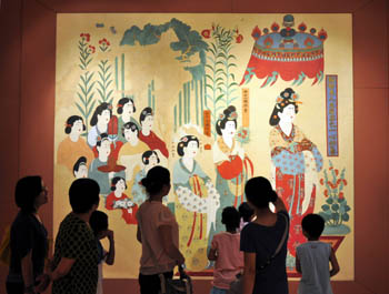 今夏“博蘊華光敦煌藝術(shù)展”在深圳開展,展覽展出內(nèi)容主要包括原大敦煌石窟復(fù)制洞窟、壁畫臨本、藏經(jīng)洞絹畫復(fù)制品、彩塑復(fù)制品、精品文獻等。新華社發(fā)(賀友保/攝) |