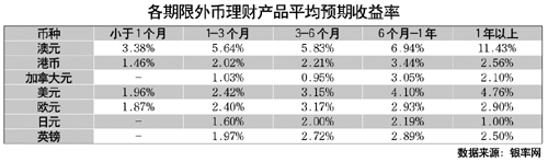 相比之下,外幣理財(cái)產(chǎn)品的優(yōu)勢(shì)明顯,預(yù)期收益率較定存高。不過(guò),外幣理財(cái)?shù)牧觿?shì)在于其投資門(mén)檻比較高。一般來(lái)說(shuō),美元理財(cái)產(chǎn)品投資金額為8000美元,澳元理財(cái)產(chǎn)品投資金額為8000澳元,港幣理財(cái)產(chǎn)品投資金額為6萬(wàn)港幣;投資者不能提前贖回,或者投資者提前贖回會(huì)出現(xiàn)本金及收益損失的風(fēng)險(xiǎn)。另外,外幣理財(cái)產(chǎn)品風(fēng)險(xiǎn)相對(duì)于外幣定存來(lái)說(shuō)風(fēng)險(xiǎn)較高。