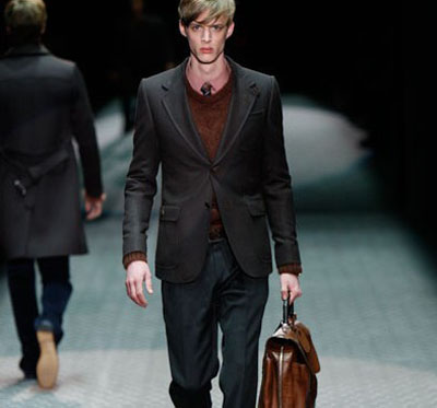 Gucci 創(chuàng)作總監(jiān)Frida Giannini針對2011秋冬男裝,提出時髦有型的新Dandy風(fēng)格。描述一位熱愛浮華與傳統(tǒng)并濟(jì)姿態(tài)的男子,在鱷魚皮或駝鳥皮雙排扣大衣或風(fēng)衣之下變換著自己的樣貌。一種催人心醉的睿智色彩組合,搭配上奢華的光影氛圍,展現(xiàn)出不凡的質(zhì)感。