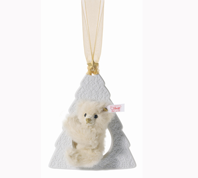 雅致LLADRO再次與Steiff泰迪熊公司合作,全新推出一件以陶瓷作為配飾的迷你泰迪熊作品。這件泰迪熊作品高12厘米,選用了優(yōu)質(zhì)的淺奶黃色馬海毛作皮毛,且四肢都可以活動。小熊的鼻子與嘴巴用金色的線手工縫制。雅致為泰迪熊特別設(shè)計了圣誕樹作為裝飾物。圣誕樹以純白的霧面陶瓷制成,表面雕刻著清晰的植物脈絡(luò)作為花紋,圣誕樹的頂部則裝點著一顆閃亮的金星。純手工縫制在圣誕樹上的泰迪熊看似正歡快地蕩著秋千。
