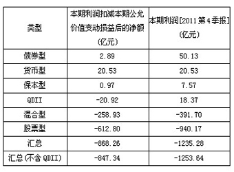 隨著部分基金公司2011年四季報數(shù)據(jù)的披露,其當期財務數(shù)據(jù)也部分浮出水面。從納入統(tǒng)計范圍的29家基金公司旗下367只基金情況看,偏股型基金成為拖累“創(chuàng)收”的最大因素,股票型基金和混合型基金合計虧損441.35億元。 | | | |