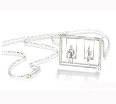 Tal工作室設(shè)計(jì)的“Snapshot”系列珠寶生動(dòng)地刻畫(huà)了在長(zhǎng)椅上和秋千上休息的人們的形象。快照(Snapshot)的含義是在短暫的瞬間偶然拍攝到的照片,那一個(gè)個(gè)凍結(jié)的時(shí)刻,通常是最原始最本真的生活場(chǎng)景。每一款珠寶仿佛是暫停于某一個(gè)精準(zhǔn)的時(shí)刻,形象被固定在一個(gè)框架的空間里。設(shè)計(jì)師將我們平日生活的美好之姿展示給我們,銀制和金制的珠寶確實(shí)是美麗而且獨(dú)特的,讓我們來(lái)看一看吧!