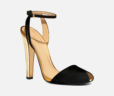 Gucci(古琦)2012春夏系列鞋履,跳脫設計的條條框框,從每一雙鞋的細節(jié)處自然流露出設計師對于時尚的敏銳感知。黑色與金色相結(jié)合,采用金屬的鞋跟,不僅彰顯質(zhì)感,而且華麗高雅,鏈條元素的加入,也顯得尤為優(yōu)雅、摩登和復古。魚嘴鞋款則使用了更具觸感的翻毛皮材質(zhì),依然是鏈條的點綴,卻將原本簡單的基本鞋款顯得個性十足。