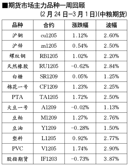 · 期貨市場(chǎng)主力品種一周回顧[2月3日-9日] 2012-02-10