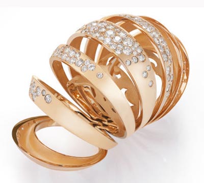今年巴塞爾高級(jí)鐘表珠寶展上,deGRISOGONO推出了神秘莫測(cè)的JIYA(印度語(yǔ):甜蜜、靈魂)系列戒指:每一枚JIYA都由七枚妖嬈性感的指環(huán)共同組成,象征著品牌創(chuàng)始人及總裁FawazGruosi先生的幸運(yùn)數(shù)字七。JIYA既可以作為一個(gè)整體,如一個(gè)來(lái)自異域的精靈般依附指間;也可以化為七個(gè)底部彼此相連的環(huán)形飾物,宛若綻放的印度紅蓮。又一次,deGRISOGONO旗下的頂級(jí)珠寶工藝師團(tuán)隊(duì),以無(wú)以復(fù)加的耐心和近乎嚴(yán)苛的工藝水準(zhǔn),將FawazGruosi大膽創(chuàng)意化為指尖可觸碰的奢華與精致。